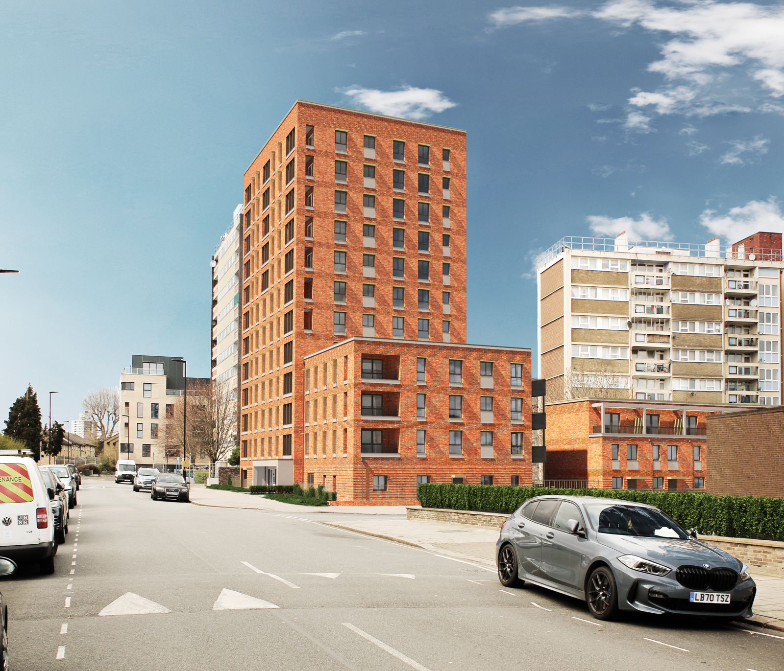 This estate regeneration project replaces two structurally compromised tower blocks on the Aintree Estate with 134 low-rise high-performance homes. Delivered in partnership with Hammersmith and Fulham Council, 80% of the homes will be genuinely affordable, with priority being given to local people. Designed to Passivhaus Classic standard, all homes will deliver exceptional energy efficiency, lower running costs and a healthier environment. The development also includes high-quality landscaping, improved public realm and enhanced safety to foster a strong, inclusive community for generations to come.
