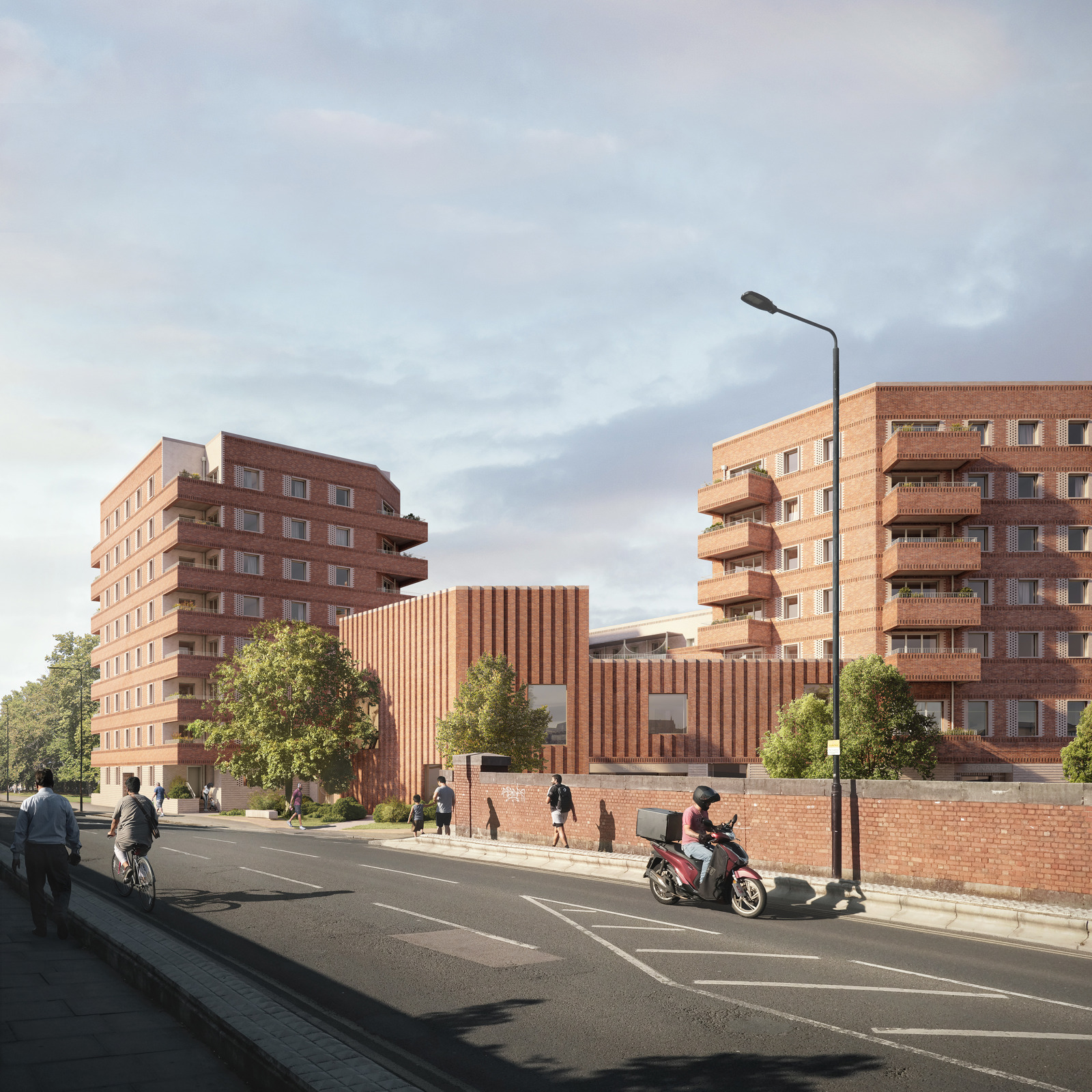Once home to Newham Boys Boxing Club, John Street is providing 70 affordable homes many of which feature corner balconies and generous roof terraces that maximise daylight and sunlight. Each home will have increased thermal comfort and improved indoor air quality, resulting in lower energy bills for residents. A spacious linear garden will serve as a central community space, alongside an expanded pocket park with newly planted trees. The development will also encourage sustainable transport with 129 cycle spaces available for residents.