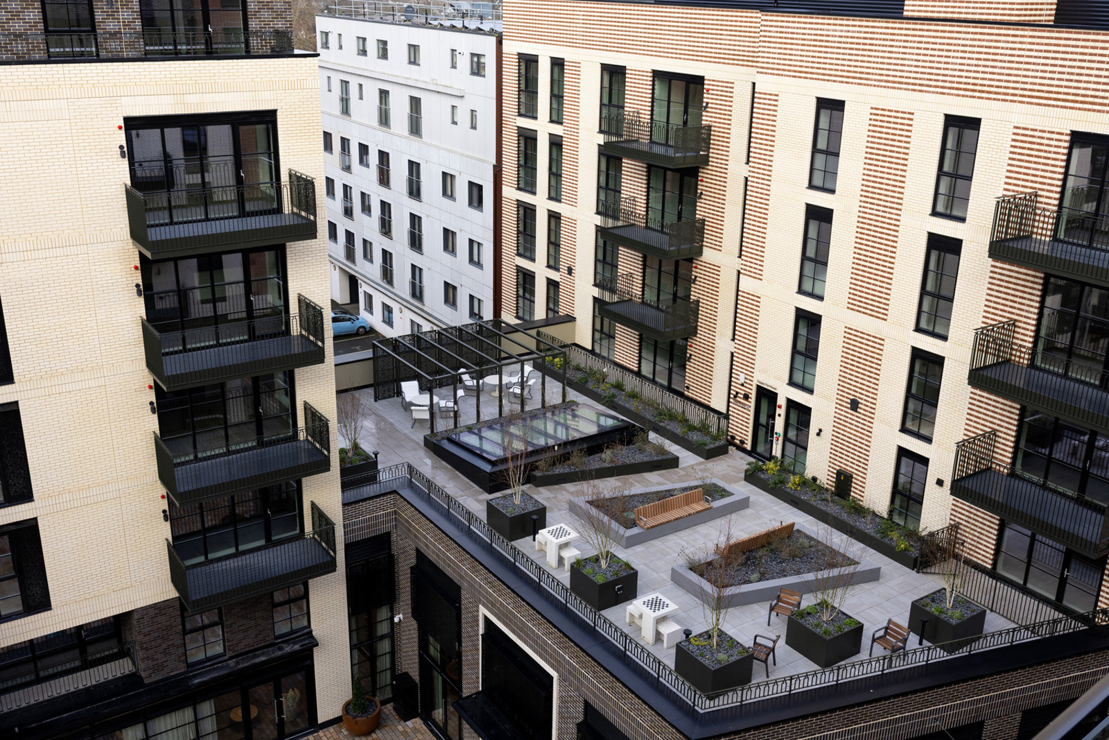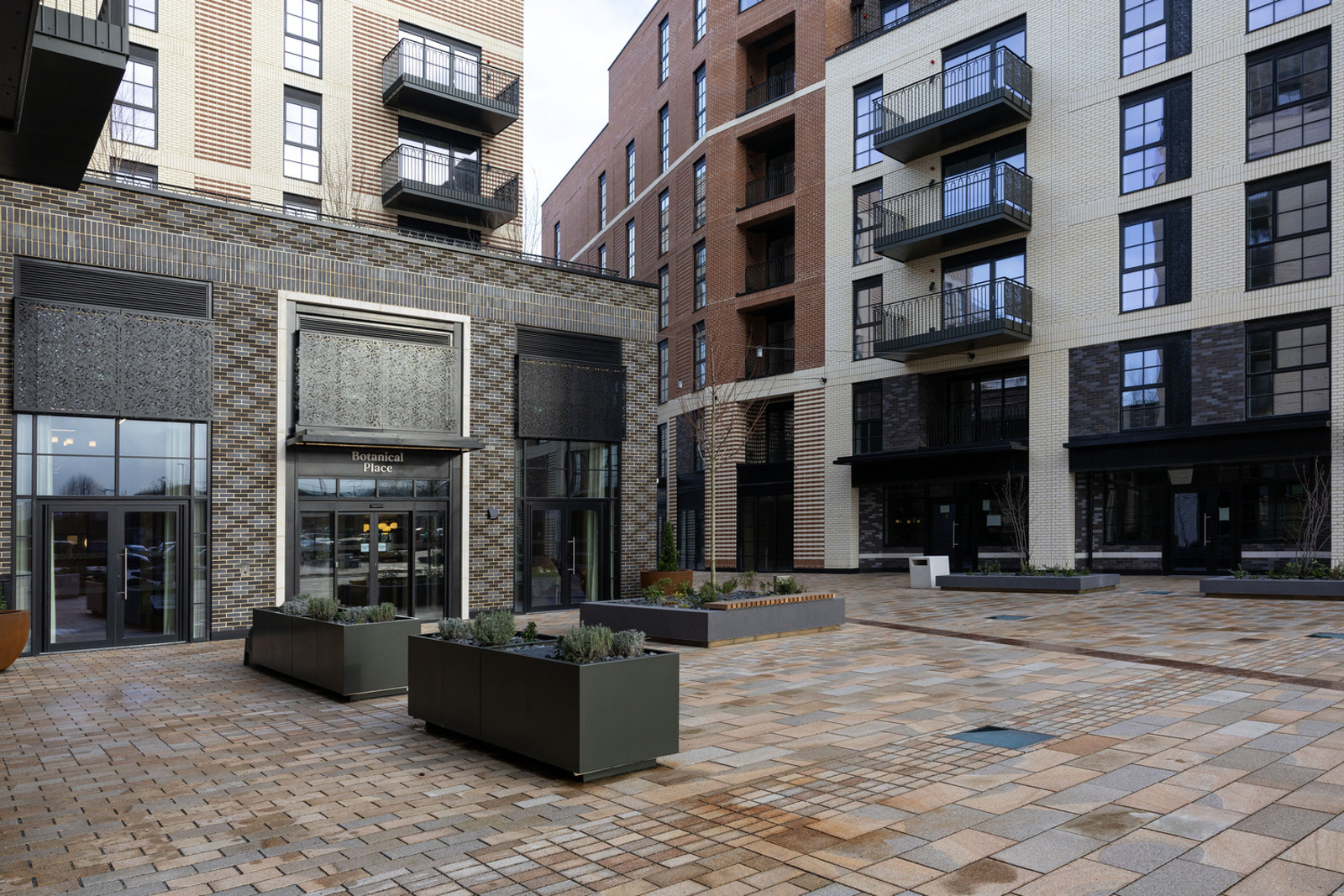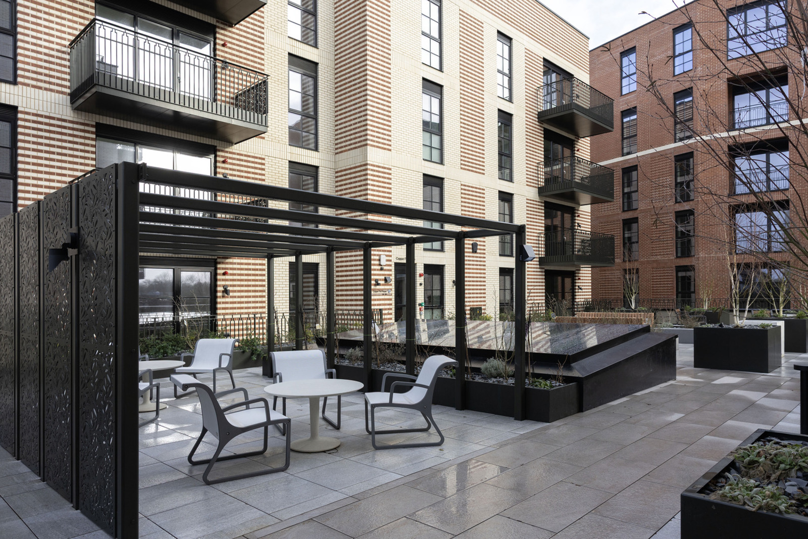 The high-quality development featured top-class amenity space, shared with the wider community, including a wellness centre, café, and restaurant, along with new public realm encompassing an attractive pedestrianised square. The new public square is at the heart of the community, enclosed by a number of retail units, a new community space, and public car parking facilities. It was carefully designed to encourage flexible community use throughout the year.