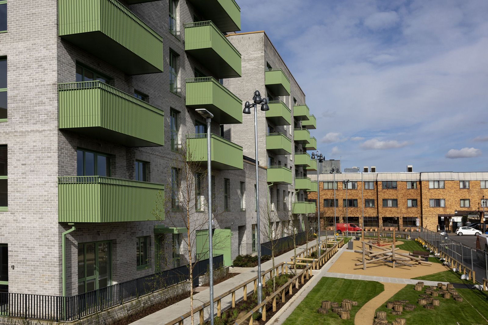 The proposed development will also include two‑ to three‑storey houses to help create a village‑style street. Later phases will feature a large courtyard garden with improved daylight, communal amenity and play spaces, a new community centre, high‑quality public realm and amenity areas, and secure car and cycle parking.