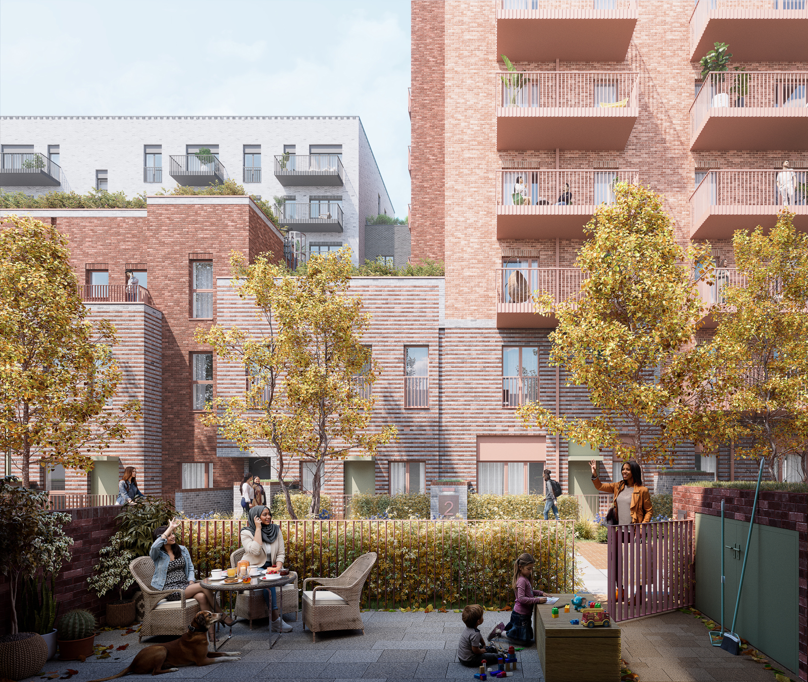The proposed development will also include two‑ to three‑storey houses to help create a village‑style street. Later phases will feature a large courtyard garden with improved daylight, communal amenity and play spaces, a new community centre, high‑quality public realm and amenity areas, and secure car and cycle parking.