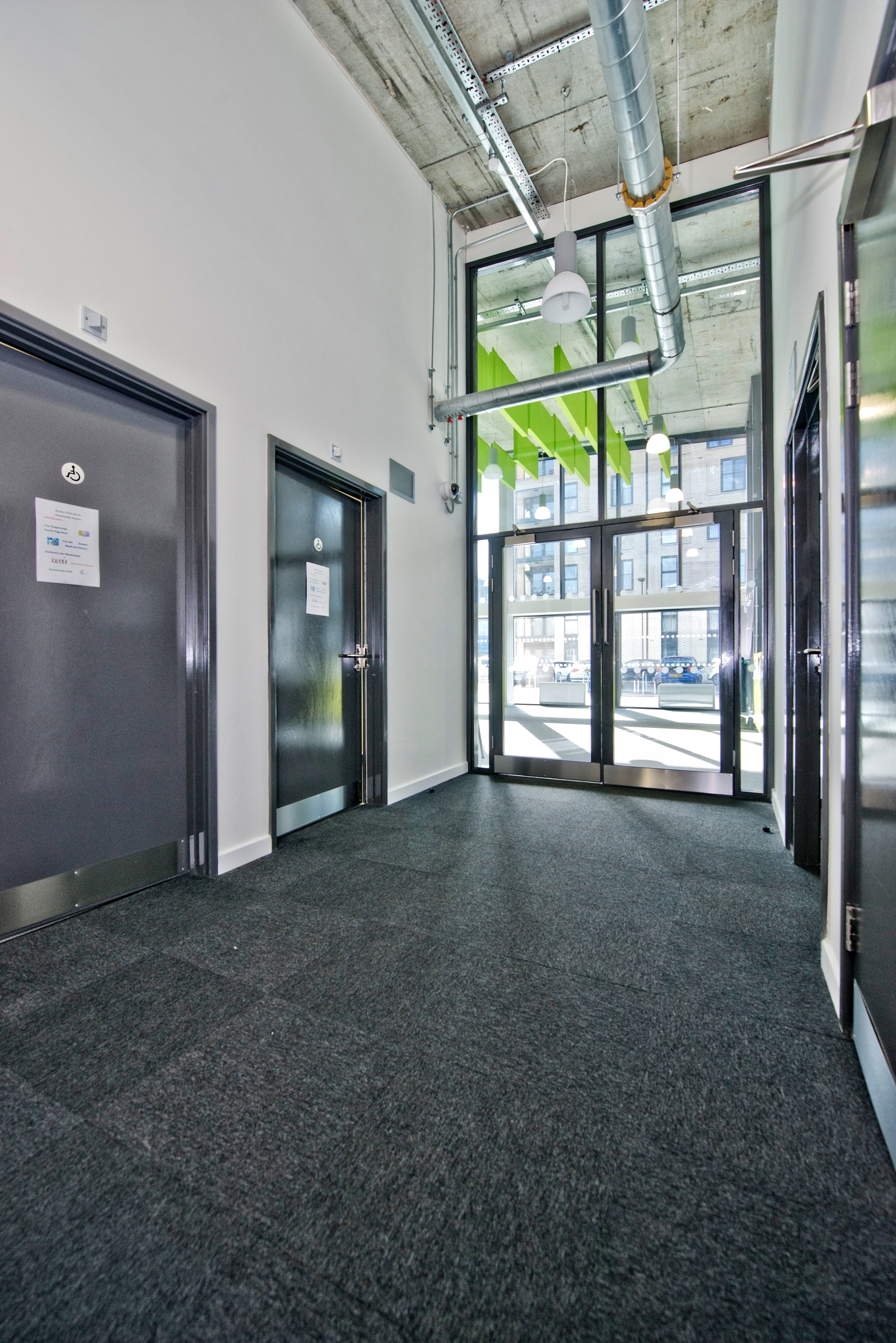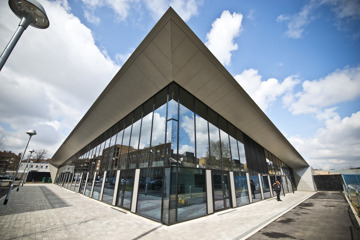 The design for the whole masterplan was created by PRP Architects, the main hall is a flexible and adaptable space that is used for sport or other physical activities with associated changing rooms. The outdoor facilities consist of a multi-use games area (MUGA), which forms part of approximately four hectares of open space. The overriding architectural principle of the building was to integrate into the large open public green space as an earth shelter, to minimise visual and environmental space, using the roof as a vantage point to view activities in and around the park.